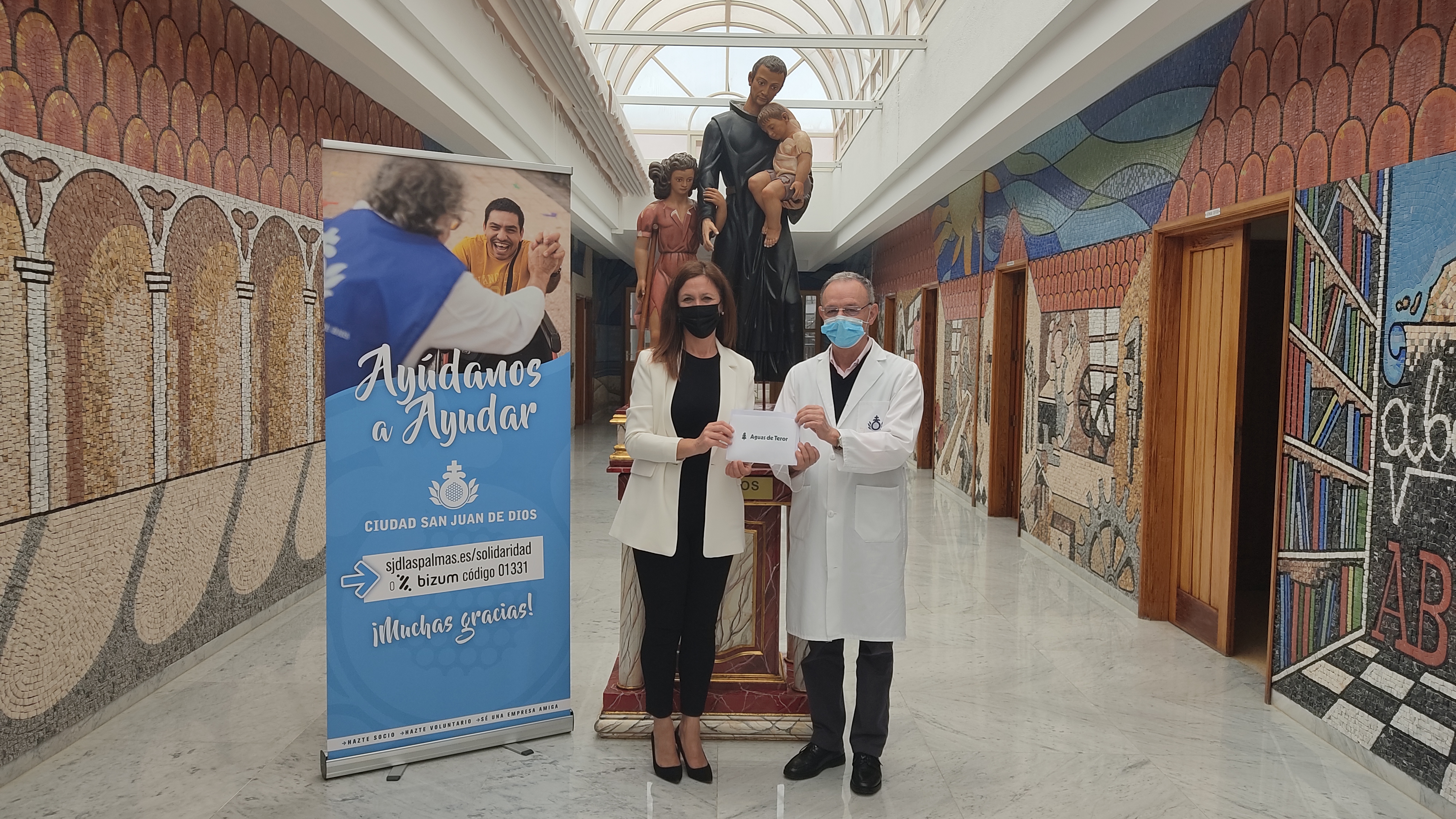 Esta semana, miembros de la empresa Aguas de Teror acudieron a la Ciudad San Juan de Dios de Las Palmas de Gran Canaria. Una visita a la que asistieron el director gerente de la compañía, Alexis Gómez, la consejera delegada de la institución y concejala del Ayuntamiento de Teror, Mónica Nuez, quienes realizaron un donativo a la Orden dentro de la presente campaña ‘Ayúdanos a ayudar’. Una colaboración entregada al Hermano Superior Rafael Cenizo, quien mostró especialmente su agradecimiento.