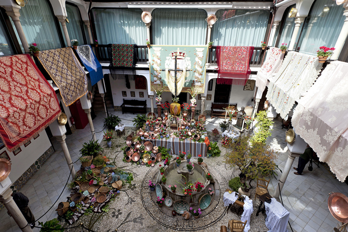 El patio del Museo Casa de los Pisa San Juan de Dios de Granada ya está engalanado para celebrar el Día de la Cruz, una de las principales fiestas locales en la que esta Casa participa tradicionalmente para impulsar y promover esta seña de identidad de la ciudad en la que Juan de Dios comenzó su gran Obra.
