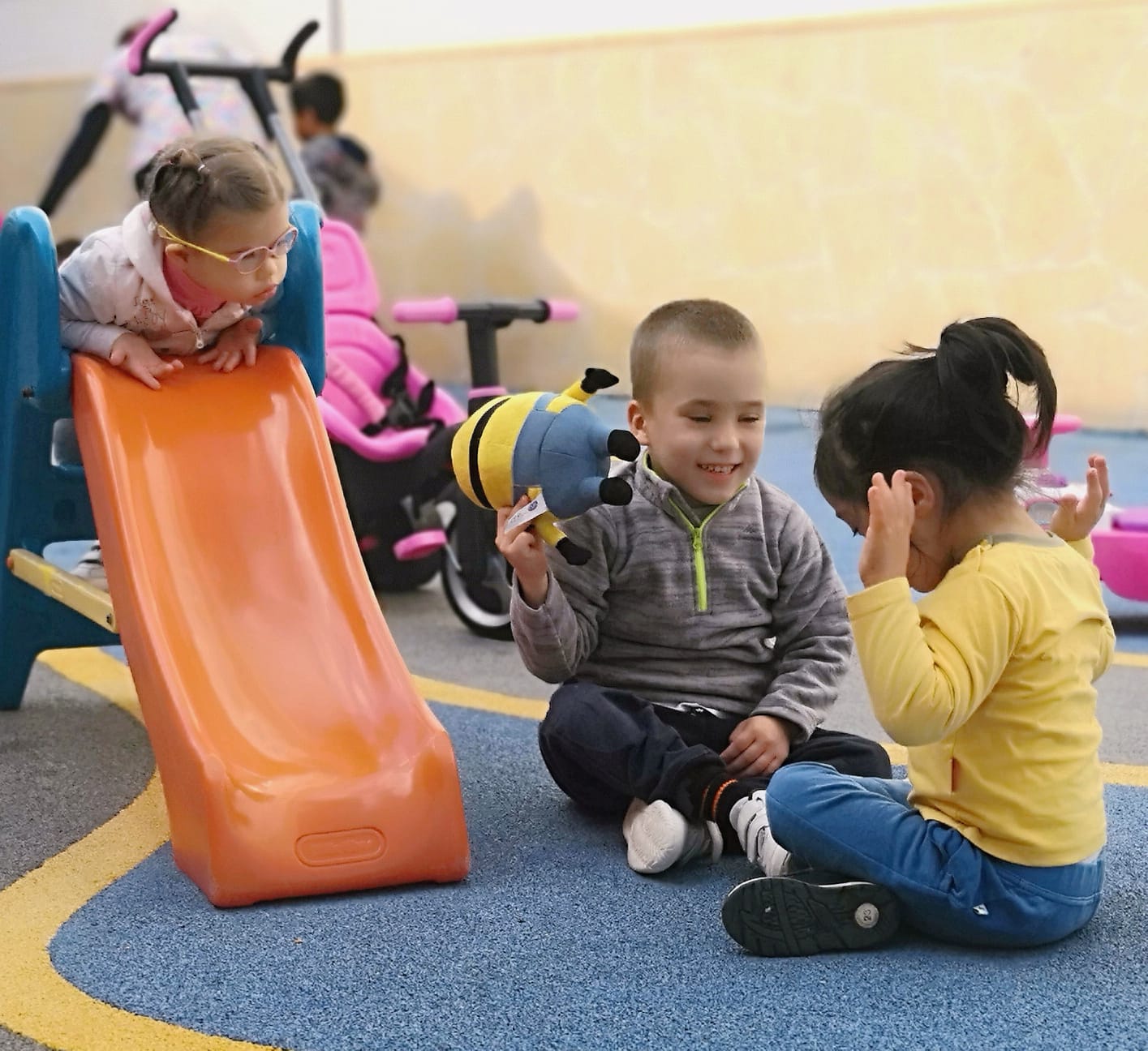 En la imagen, tres de nuestros alumnos que reciben atención en el centro: primero en la Escuela Infantil de Intervención Temprana y ahora en el Colegio, donde reciben una atención especializada para potenciar su capacidad de aprendizaje, la comunicación y la autonomía, además de favorecer su plena participación en la sociedad.