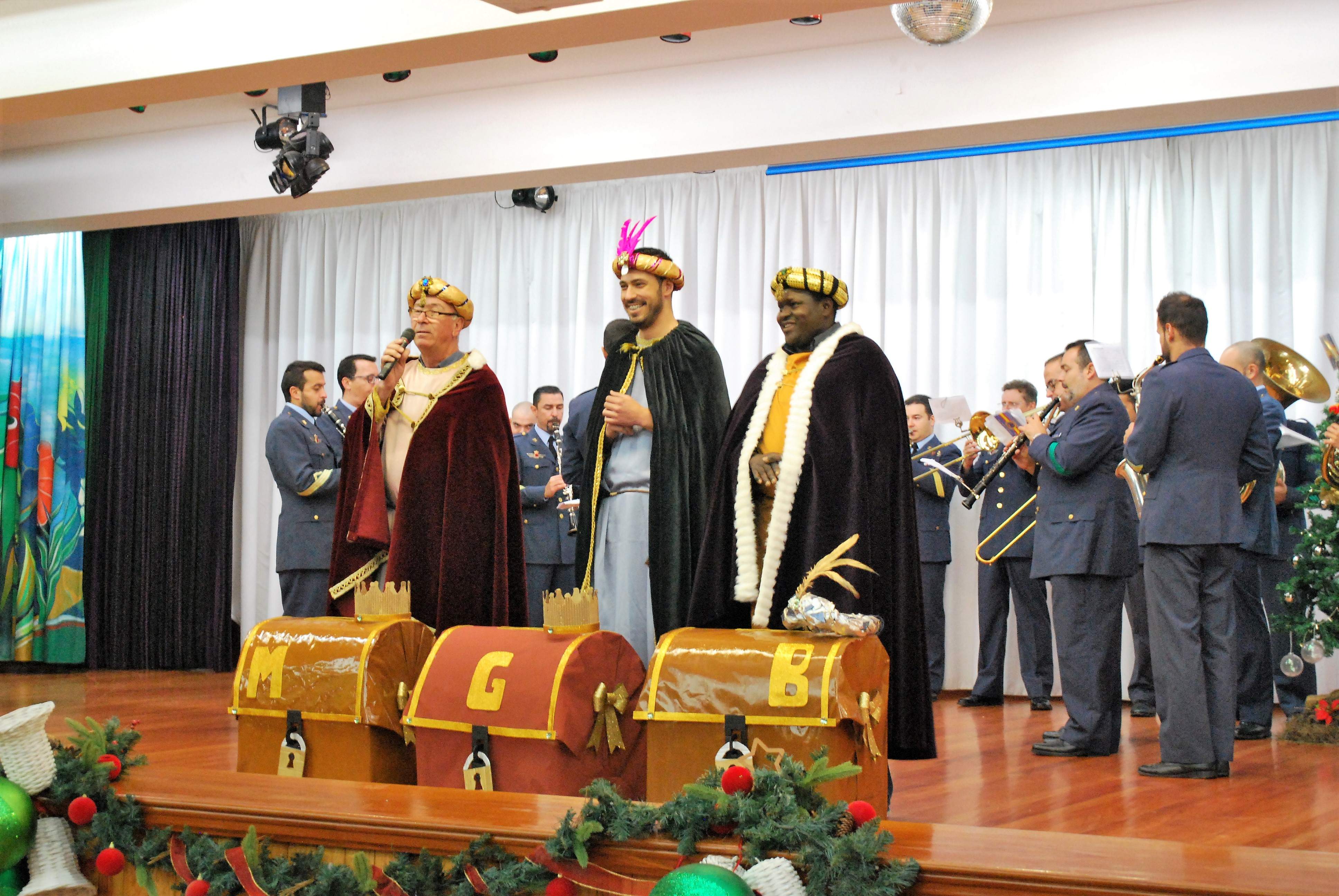 La Banda de Música del Mando Aéreo de Canarias, con su director al frente, el Capitán José Luis Costa, ha amenizado esta entrega de misivas que ha estado precedida por una celebración en la que han participado personajes de Frozen y de la Patrulla Canina, además del payaso Sapito.