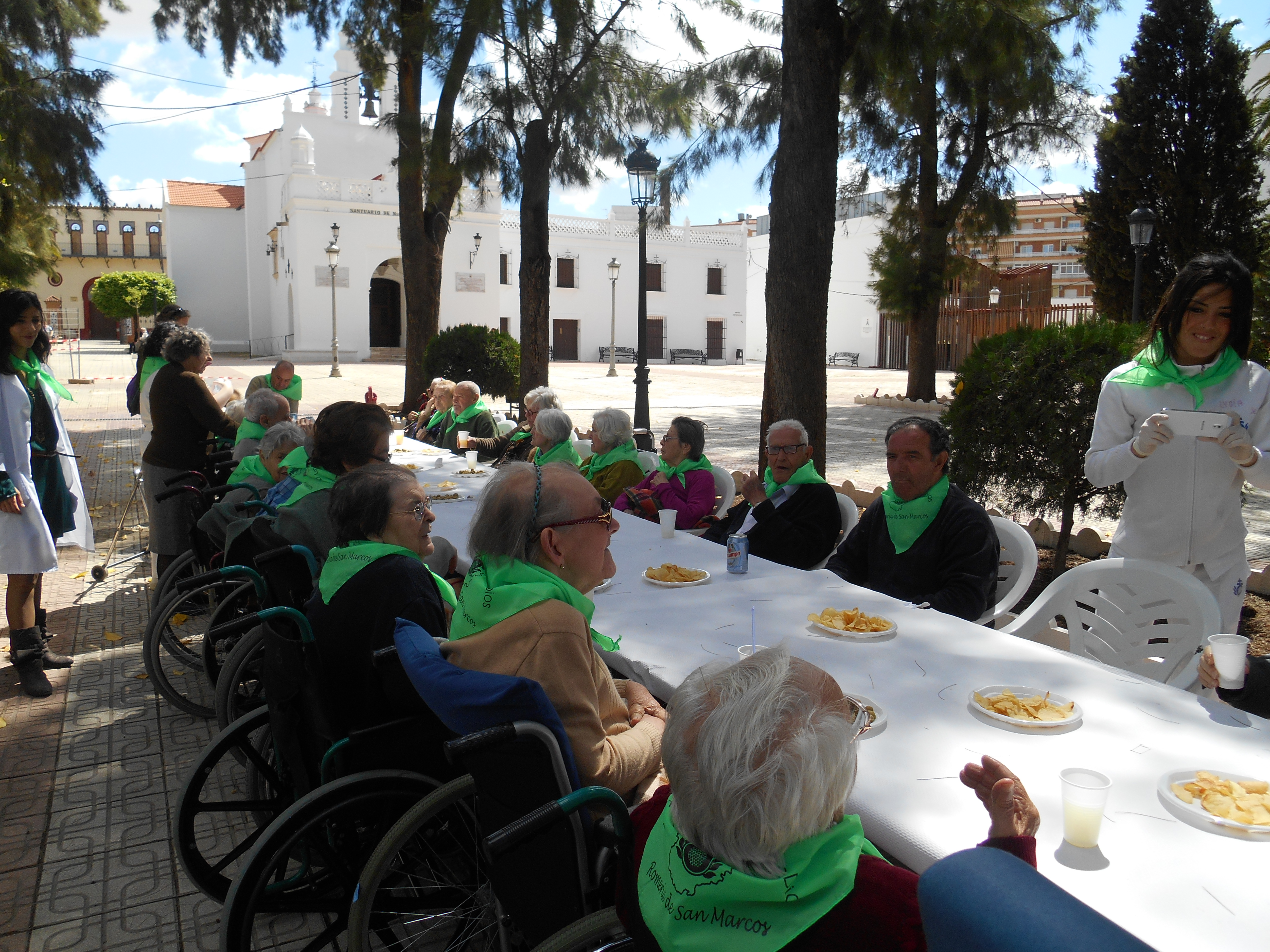 Los mayores de la Residencia San Juan de Dios de Almendralejo han festejado este año la romería de San Marcos con un almuerzo extraordinario en torno al edificio residencial para unirse a la celebración que la localidad convoca en la festividad del Apóstol.
