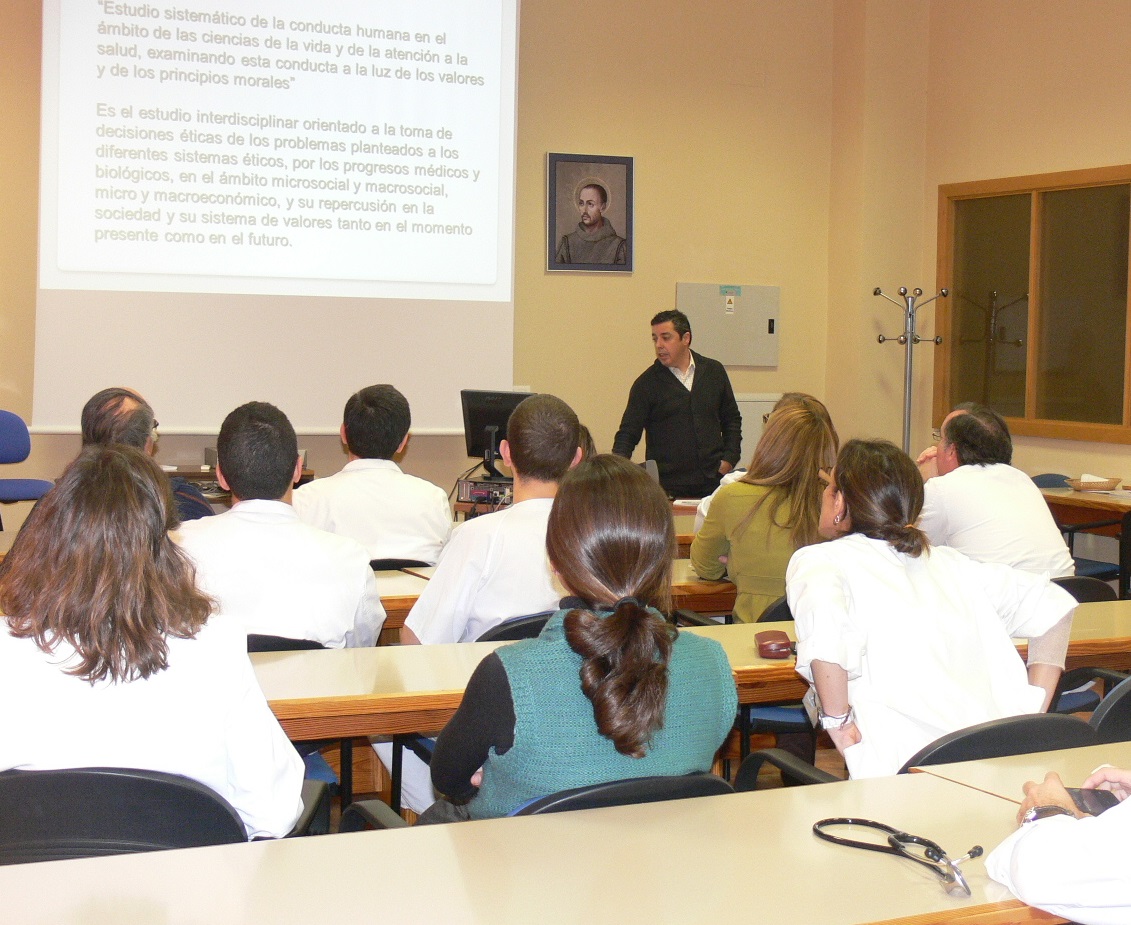 Las actividades han continuado con la charla informativa “Principios de la bioética desde la responsabilidad de un tutor. Experiencia práctica de un Hermano de San Juan de Dios”, que ha tenido lugar en el Aula de Formación del propio hospital y a la que ha asistido un numeroso grupo de profesionales de la casa. En esta convocatoria se han tratado los principios generales de la bioética y el Hermano a cargo de la actividad ha planteado casos prácticos que ha experimentado en la trayectoria de su labor. (Ver más imágenes en Flickr)